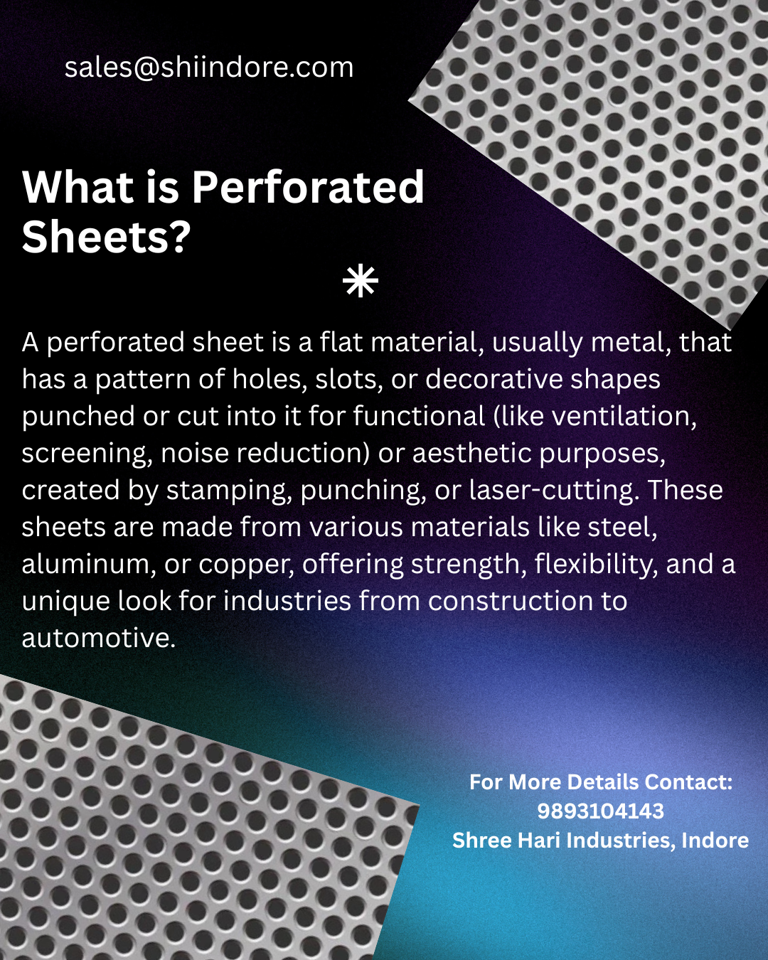 Top Perforated Sheet Manufacturer in Indore, Shree Hari Industries manufacturing best quality perforated sheets for its clients in Indore and other Parts of Madhya Pradesh. Here you can get them customised as per your requirements.